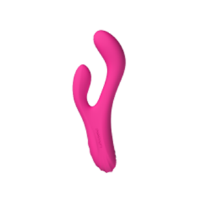 The next thing we’re going to do is take a little bit more of an in-depth look at the toy and how to use it. So let’s move everything out the way and take a closer look. On the longer arm of the toy is our oscillating pad, the smaller arm of the two houses our vibrator. The vibration arm is fairly flexible, where the oscillating arm is rigid and is firmer. There are two buttons located on the handle of the toy. To turn on your Osci 3, you need to hold down the top one, which has a zigzag line. This button also controls the vibrations.